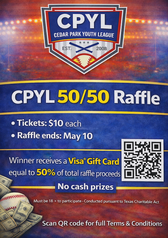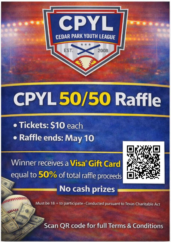 Sponsor: The raffle is conducted by Leander Youth League, Inc. d/b/a Cedar Park Youth League (“CPYL”), a Texas nonprofit organization.